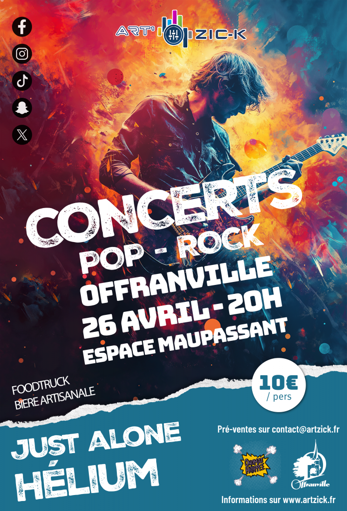 Basée à Offranville, l’association Art’Zic-K a pour objet la promotion des musiques pop-rock en milieu rural. Son action consiste à faire vivre des moments inoubliables au travers de concerts intimistes et chaleureux, en mettant en avant des artistes, auteurs et compositeurs du territoire Seinomarin et Normand.